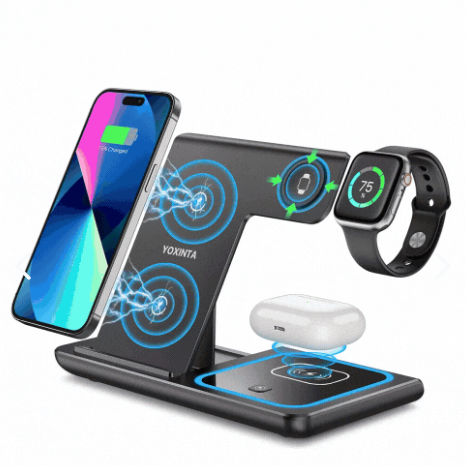 Olvídate del desorden y carga tu smartphone, smartwatch y auriculares al mismo tiempo con esta estación de carga inalámbrica 3 en 1. Compatible con iPhone, Samsung, Huawei y más.
